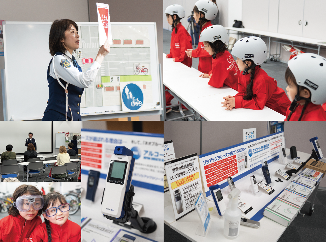 令和6年11月より自転車の飲酒運転に関して、従来の酒酔い運転に対する罰則に加え、酒気帯び運転に対する罰則が新たに導入されました。天満警察署によりますと、昨今では酒気帯び運転の検挙が急増しており、飲酒後の自転車の運転禁止はもちろん、二日酔いの場合も自転車を運転しないようにしましょう、と教えていただきました。 その後、中央自動車工業さまより官公庁や地方自治体、一般企業に加え、警察の飲酒検問・第一次検査用として採用されている「アルコール検知器・ソシアック」についてご紹介いただきました。 また、飲酒時の視界を再現できる特殊なゴーグルを使用した、飲酒状態体験ゲームが行われ、保護者さまもキッズも、大いに盛り上がりました。 様々な学びや体験が盛りだくさんの「春の交通安全教室」。自転車のある日常が、もっと楽しく、安心・安全なひとときになりますように。